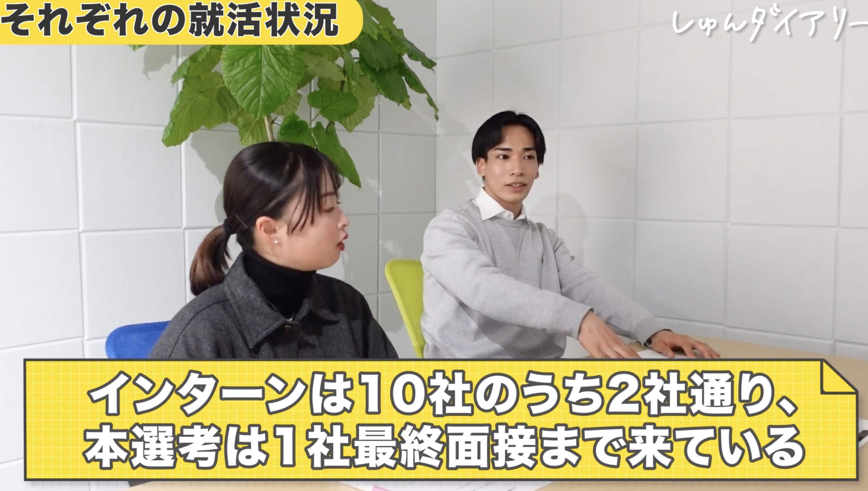 就活生:私は10社応募して2社通過。本選考では1社が最終まで進んでる。