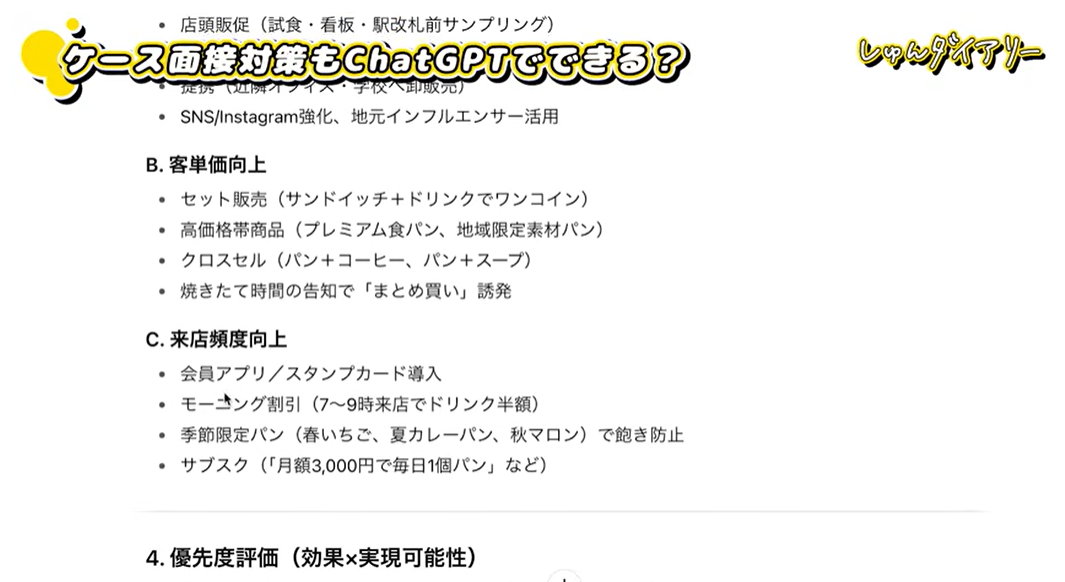 ✓ケース面接では、AIに模範回答を作らせて「思考プロセスの型」を盗む