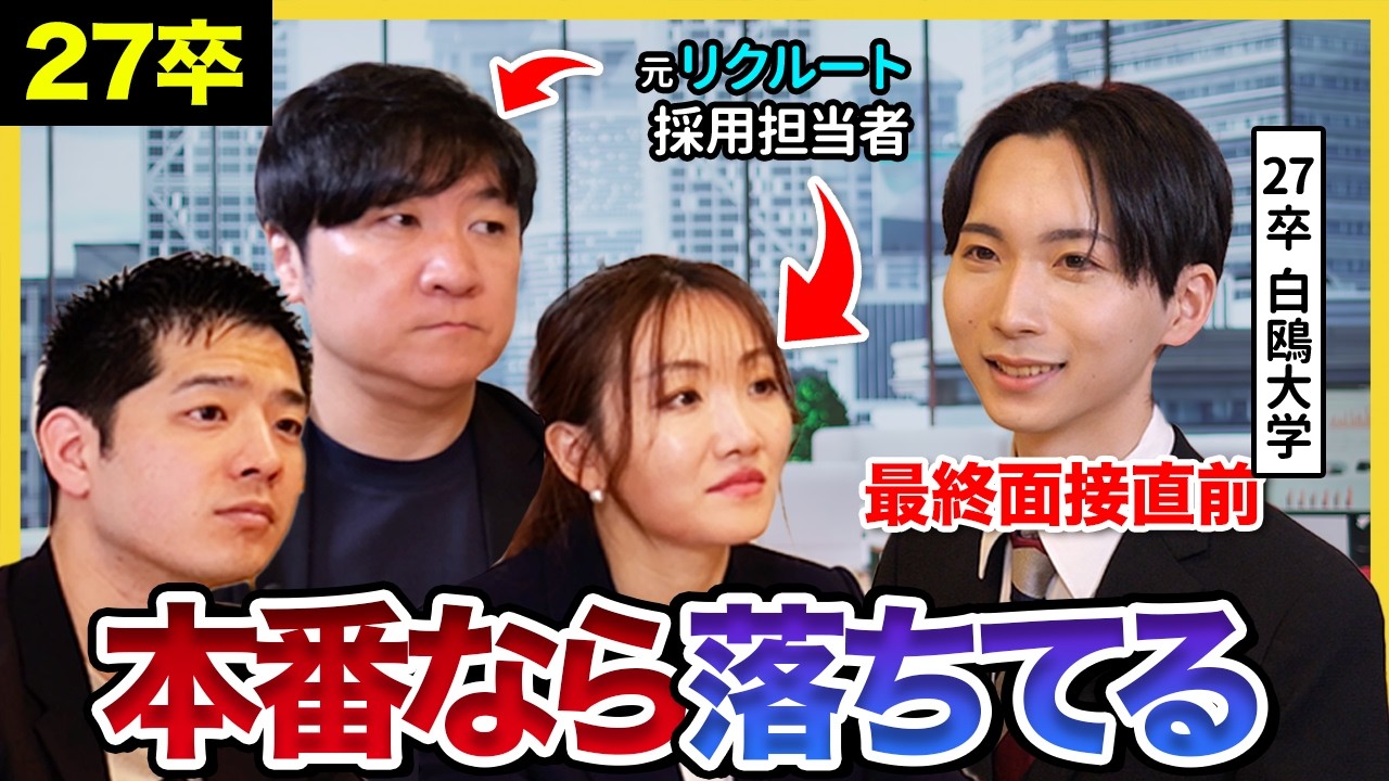 「最終面接目前なのに、なぜか通らない」——27卒で同じ壁にぶつかる就活生は少なくありません。今回のしゅんダイアリーは、人材研究所代表・曽和利光さん、Sworkers執行役員・古賀ゆかさん、人材研究所・細谷さんという3人のプロ人事が、白王大学の栗川さん(27卒・IT/SIer志望)に模擬面接を実施し、最終面接直前に残された一番大きな課題="エピソードと志望業界のミスマッチ"を鋭く指摘した実践回です。