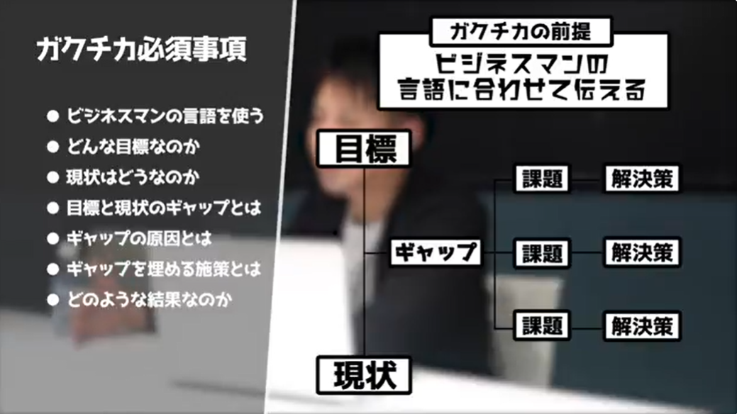 多田:企業が知りたいのは「もう一度同じ状況でも成果を出せるか」。そのためには 目標 → 現状 → 課題 → 施策 → 結果 の流れが必要です。