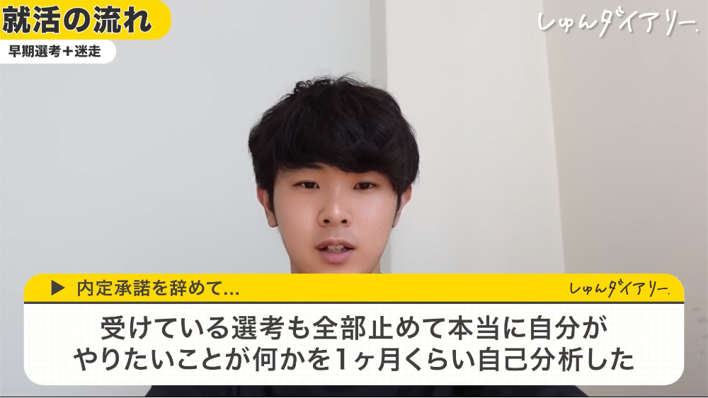 そのとき「このまま内定承諾したら後悔する」と思って、すべての選考を止めて、もう一度自己分析をやり直すことにしました。