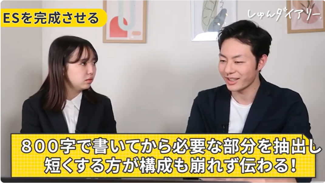 ESは短くまとめる前に、全部書き切るのがコツ。800字で書くと、エピソードや学びが網羅されます。そこから文字数に合わせて削るだけ。構成が崩れにくく、ES量産も楽になります。1月は「完成度より素材作り」を意識しましょう。