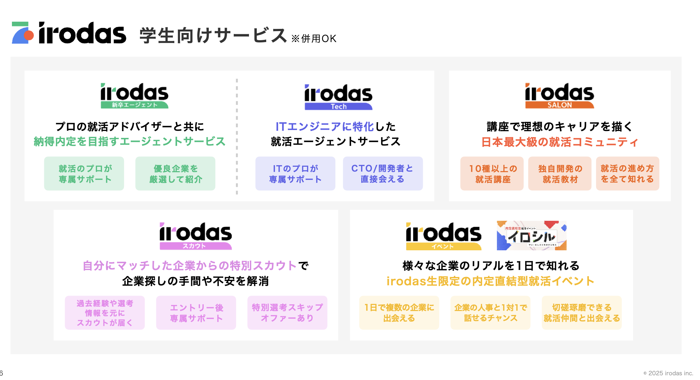 それが、年間約15万人の学生が利用する日本最大級のキャリアスクール・エージェント「irodas(イロダス)」です。