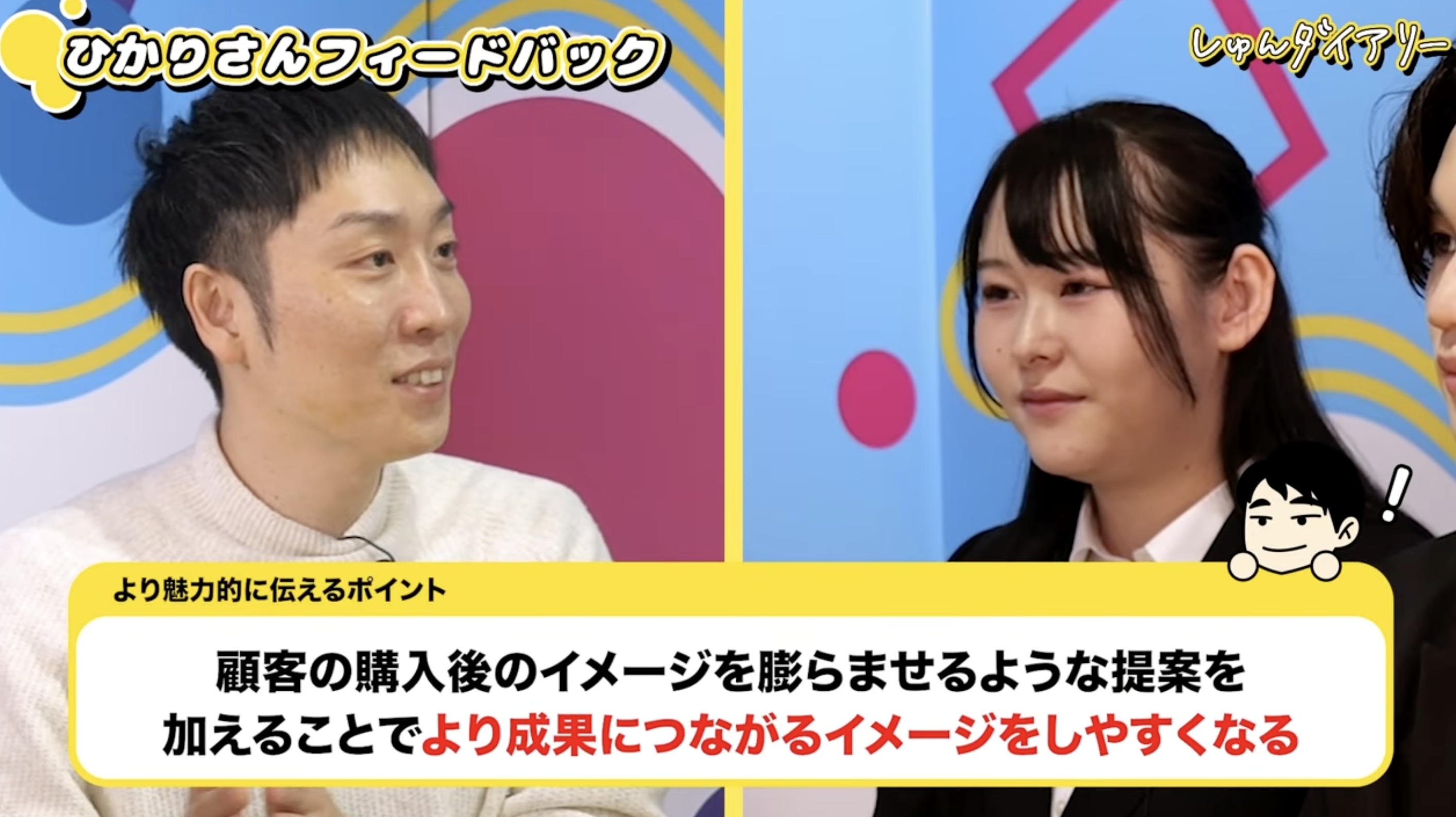 岡本さん:ひかりさんの自己PRは、「準備をもとにした提案力」として、長期インターンでの高単価のお酢販売の話をしてくれました。売上40%アップという成果に加えて、「顧客層と商品価格がミスマッチ」「高いので検討される」という明確な課題設定ができていたのが良かったです。