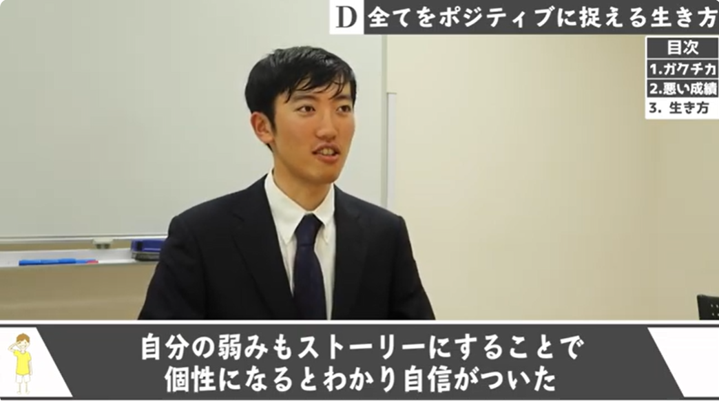 悪い成績とか、就活ができていなかった話でも個性になるとわかって、自信がつきました。