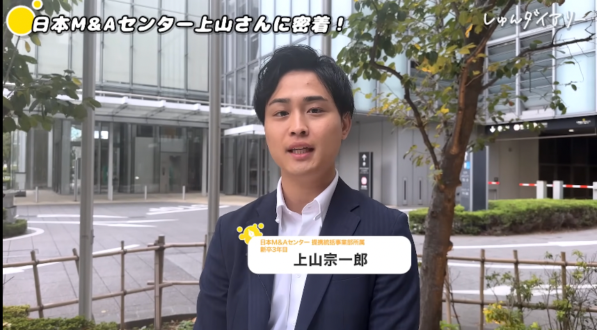株式会社日本M&Aセンターの上山宗一郎と申します。今、定型統括事業部という部署に在籍しています。1999年生まれ、今年で25歳になります。新卒3年目です。よろしくお願いいたします。