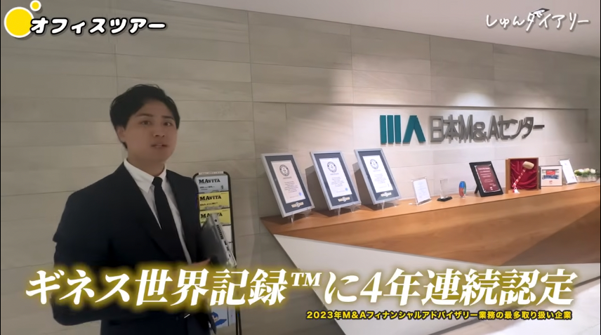 こちらがメインエントランスです。世界で一番M&Aをやっている会社としてギネス記録に4年連続登録をいただいてまして、その盾になってます。