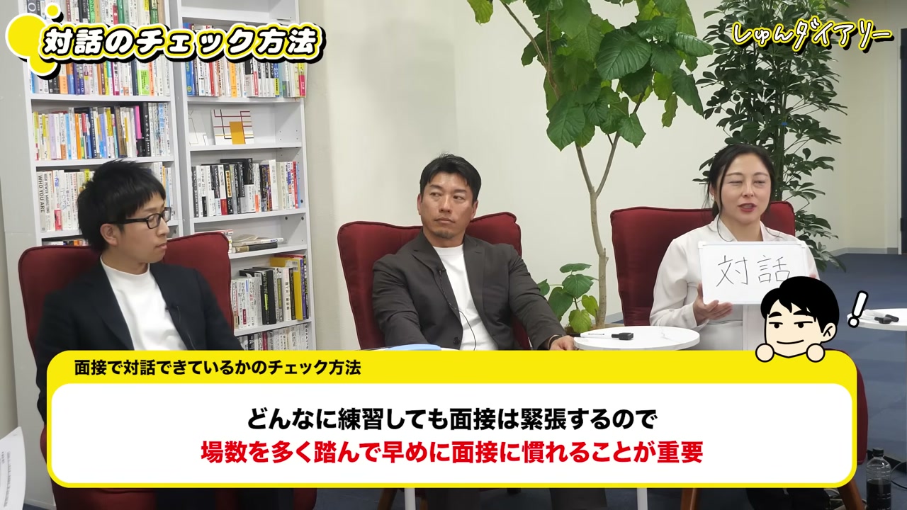 植木さんは「面接の中で深掘りされてパニクると説明が15分に伸びる。だから面接ではないところで何度も失敗しておく」とアドバイス。練習の場をどれだけ作れるかが再現性を固める近道です。