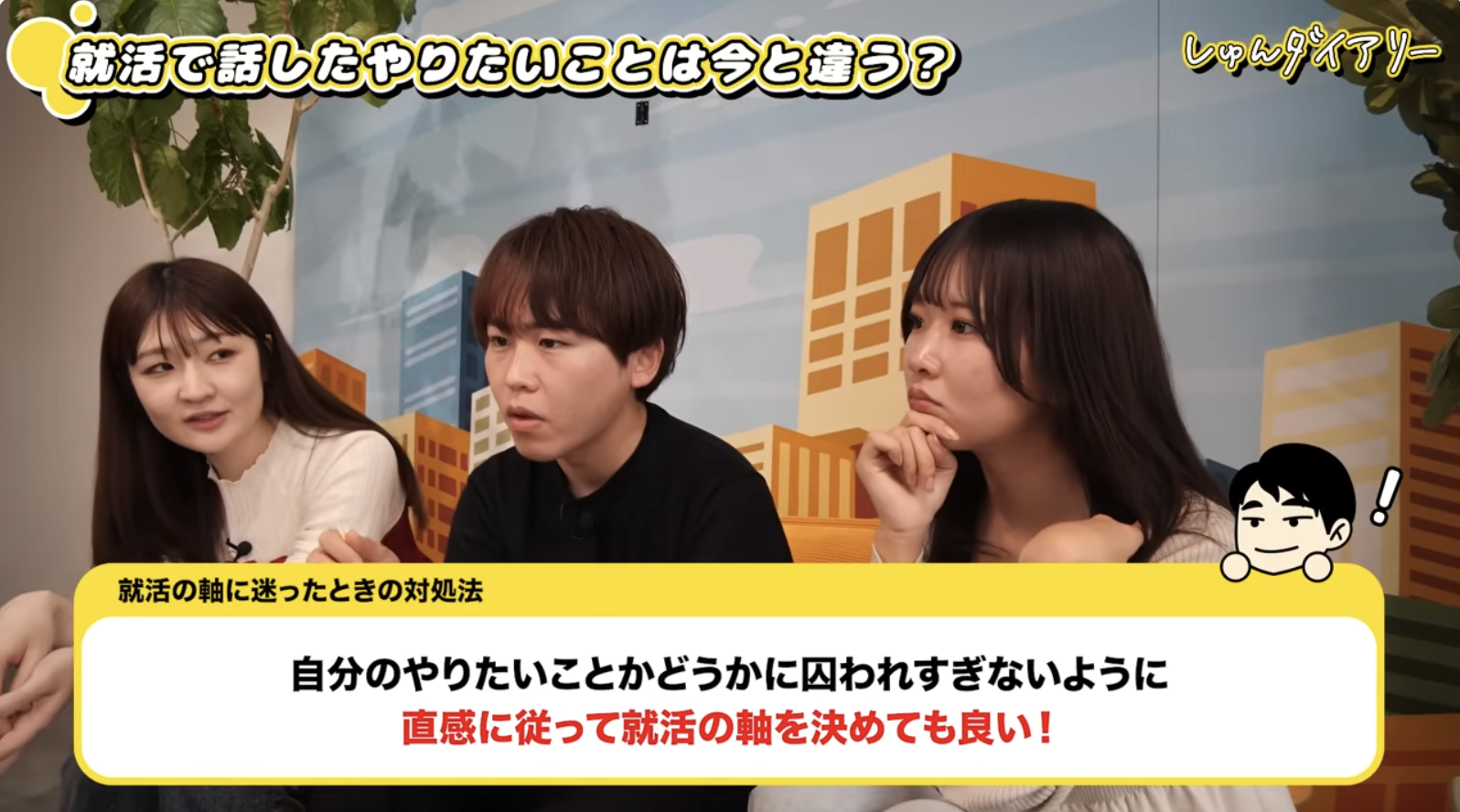 大学3年生のリアルな悩みに対し、若手社会人(24歳・25歳)の先輩が自身の経験からアドバイスを送ります。「やりたいことが見つからない」「周りと比べて自己肯定感が下がる」と焦っている就活生必見の内容です!