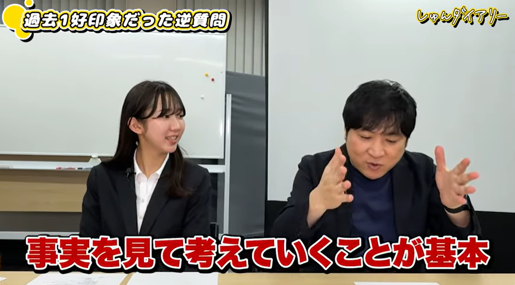 逆質問の本来の目的は、学生の動機づけ(会社を好きになってもらうこと)。一発目から「福利厚生・給与・有給」だけ聞くと、“仕事より条件重視”に見えて少しマイナス。聞くなら後半に回すのが無難。好印象なのは、「なぜ入社したか」「仕事の面白さ」「今後どうしたいか」など、面接官個人に興味を持った質問。さらにレベルが高いのは、「女性マネージャーの割合」「育休復帰率」など、自分の仮説をファクトで確かめる“仮説検証型の逆質問”。二次面接では、「自分はこう見られたい」というタイプ像を決め、そのタイプを証明するエピソードだけを選んで話すのがコツ。