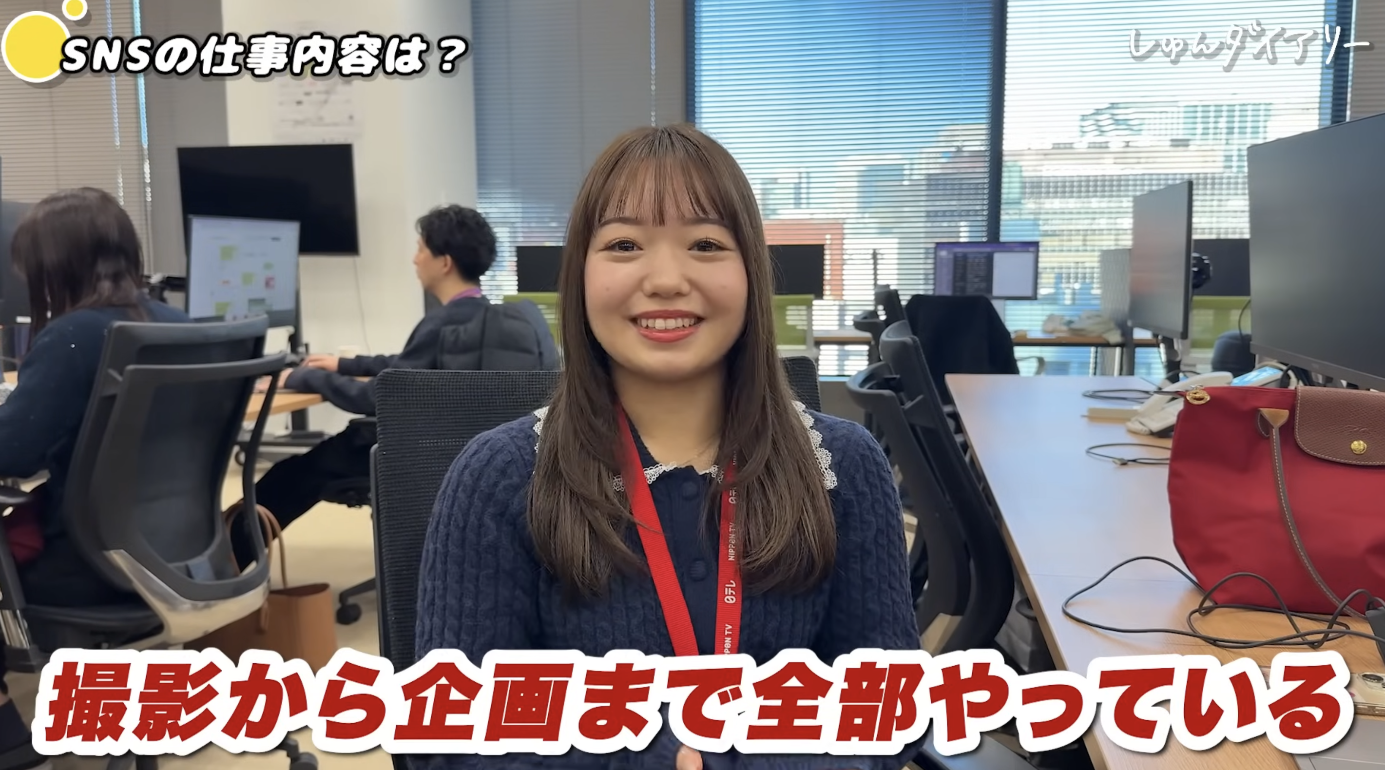採用インスタが最初大変でした。面識のない方に出演交渉したり、人事から「面白い動画を作りたい」って依頼を受けて企画を考えたり。