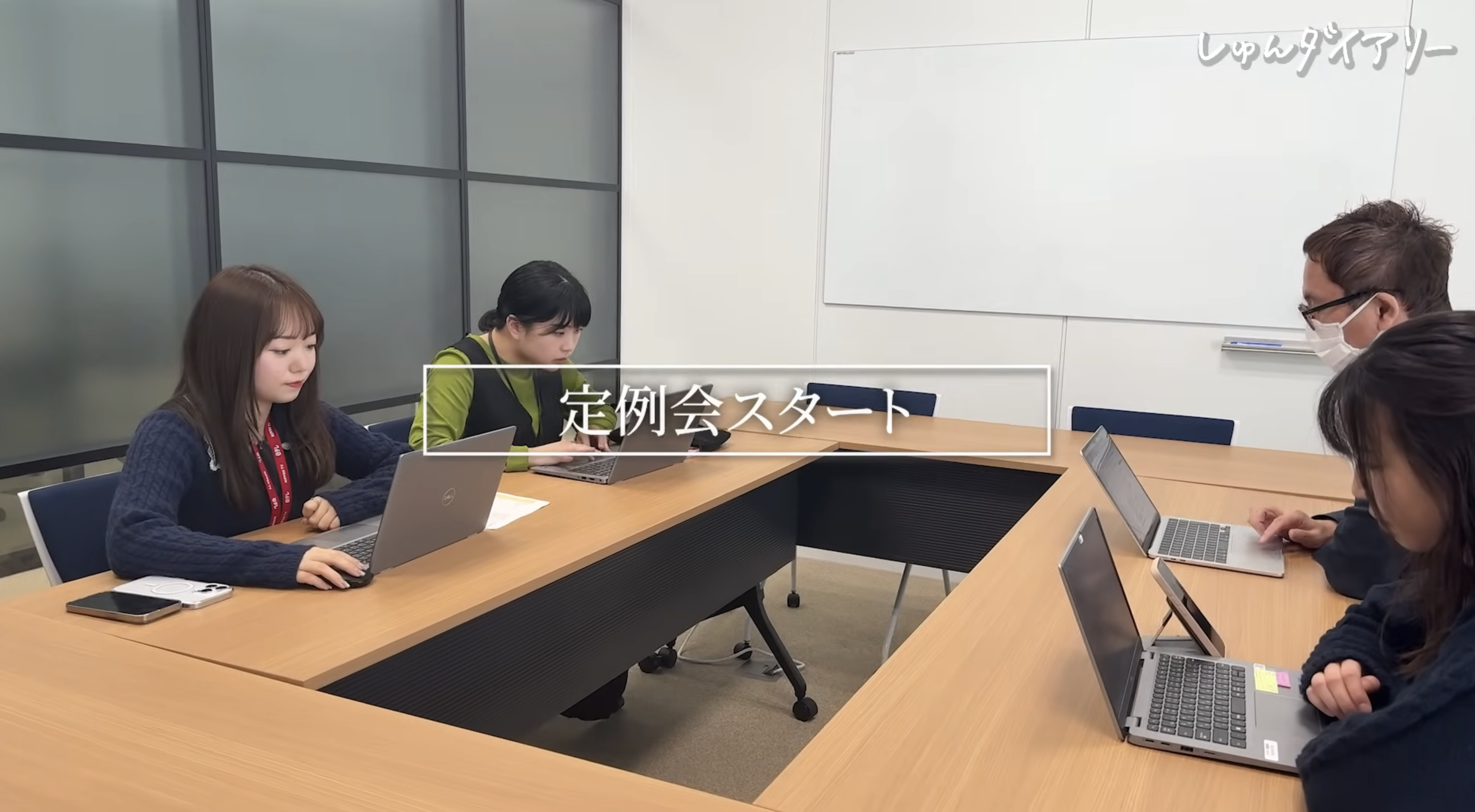 はい。まず定例会、採用インスタの撮影と編集、ランチ、資料作成、新しい案件の商談です。