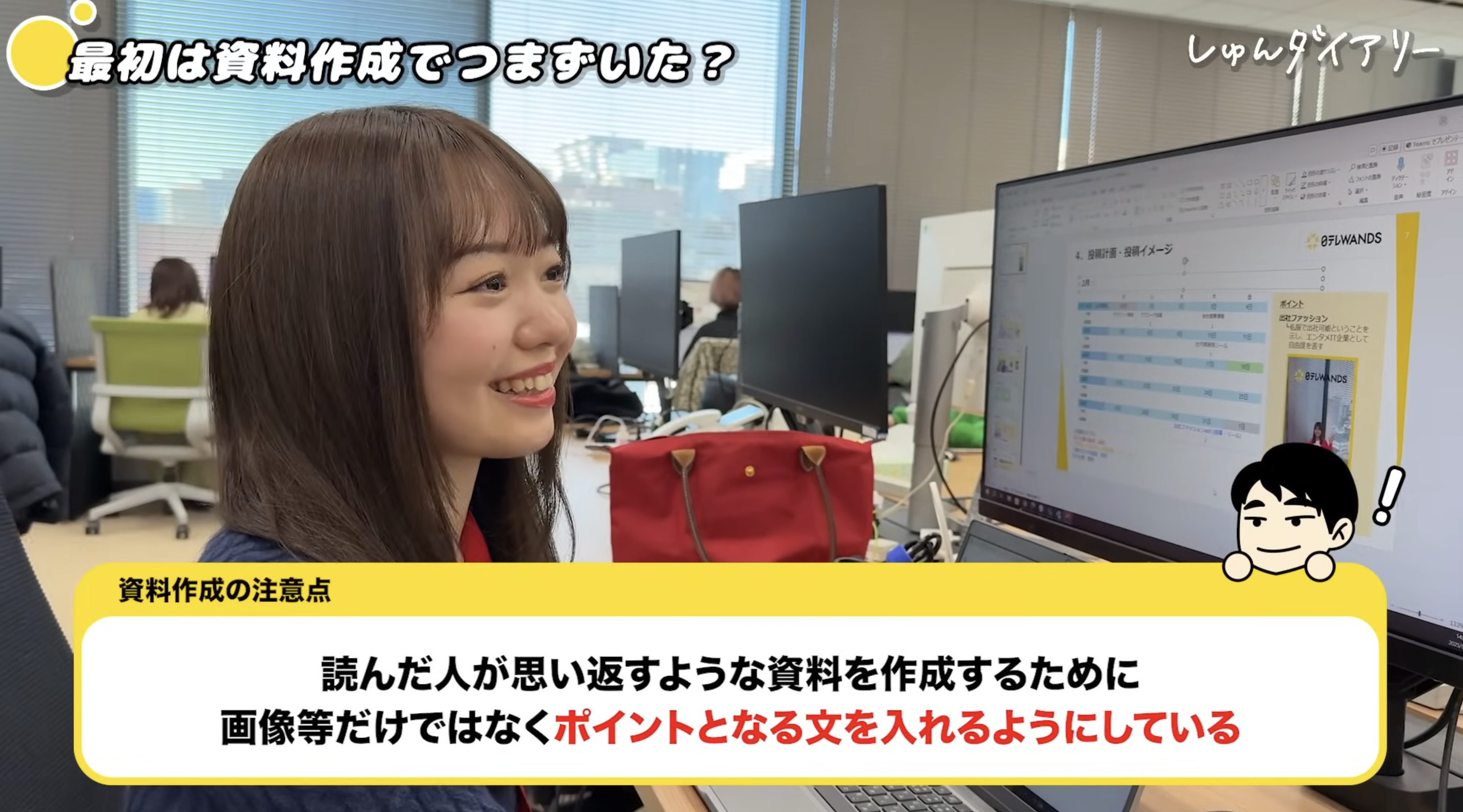 ✔️ 新卒1年目でも、採用SNSや複数クライアントのSNS運用を持ち、撮影・企画・編集・提案資料・商談まで一気通貫で担当する機会がある