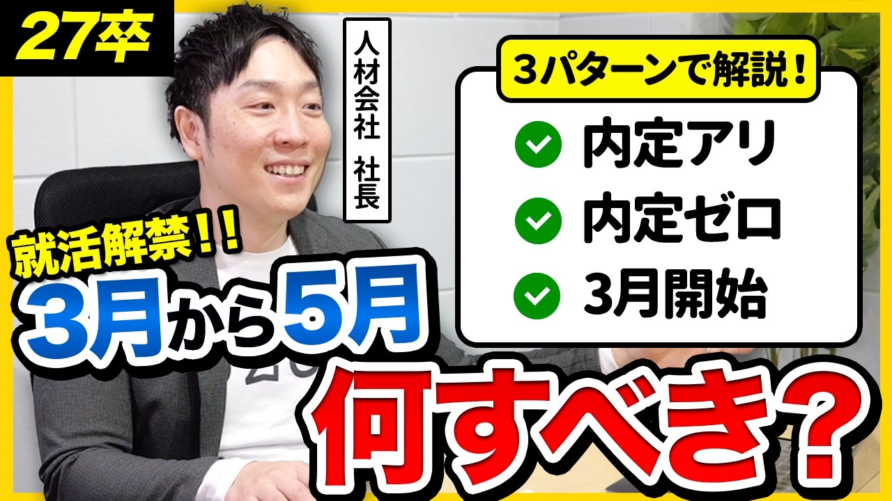 就活スケジュール,完全攻略,まとめ,ES対策,内定会員限定【27卒】3月〜5月の就活完全攻略|納得追求・迷子停滞・3月開始の3タイプ別アクションUZUZ岡本啓毅さんが納得追求・迷子停滞・3月開始の3タイプ別に3〜5月の動きを徹底解説。定量スコアリングと職種軸で納得内定を掴む保存版。2026年4月23日いいね#27卒#就活スケジュール#3月#内定#岡本#完全攻略#職種別