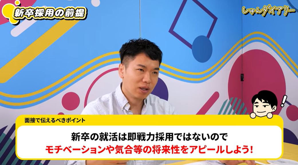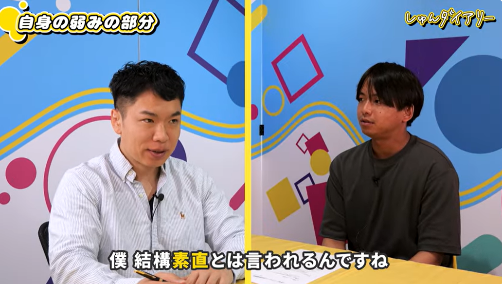 セカニチ:良かった点は大きく3つです。1つ目は、とにかく落ち着いていて会話になっていたこと。高校時代に70人のキャプテンやっていたり、いろんな場に立ってきたんだろうなという行動量が伝わりました。2つ目は、ありのままを話していたこと。嘘をつけないって自分でも言ってましたけど、話の内容も話し方もそれと一致していて、「この人の話は全部本当なんだろうな」と信頼できました。3つ目は、たくさん行動して、たくさん失敗してきた裏付けがあることですね。その上で「どう改善してきたか」まで話せていたので、「今後も伸びるだろうな」と感じました。