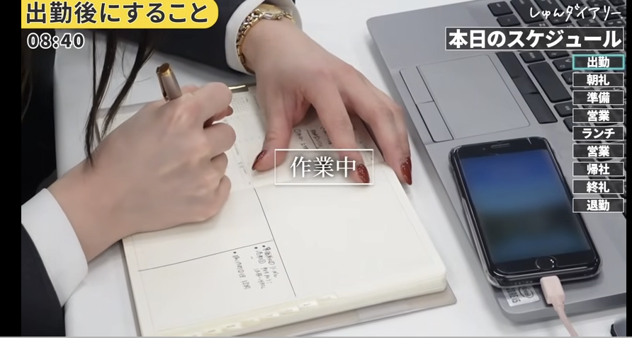 まず打刻して、今日の予定を整理して、訪問準備をします。