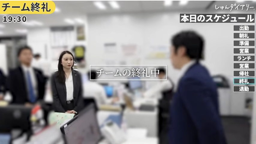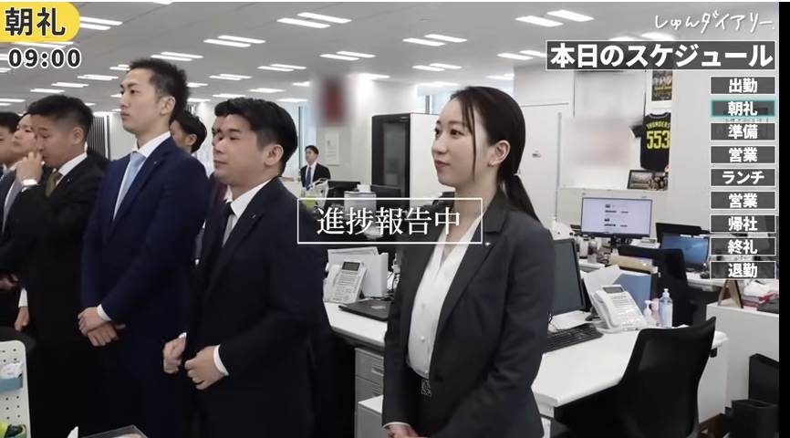 ②朝礼:先輩の熱い一言から1日が始まる