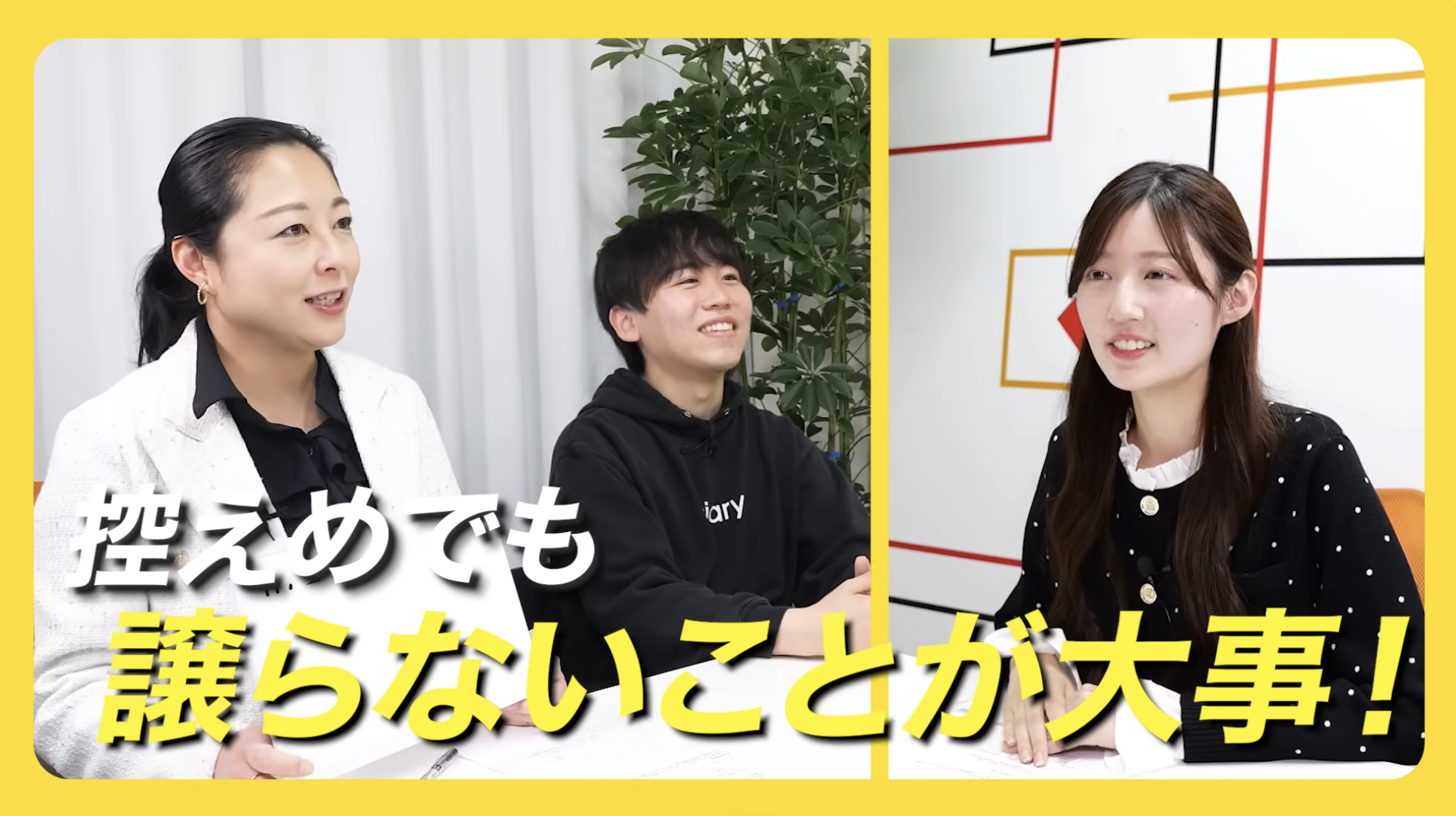 一方で、プロの目線から指摘された改善点もありました。 佐野さんのエピソードは「個人の成果(留学やミスコン)」に特化しており、「チームでの協調性」を示すエピソードが弱かった点です。(面接内でチーム戦のリーダー経験も語っていましたが、基本は個人プレイヤーの印象が強かったようです。)