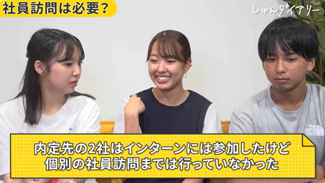 きい:私は“会社による”が真理かな。2社は社員訪問ゼロで通ったよ。インターンだけ参加した。