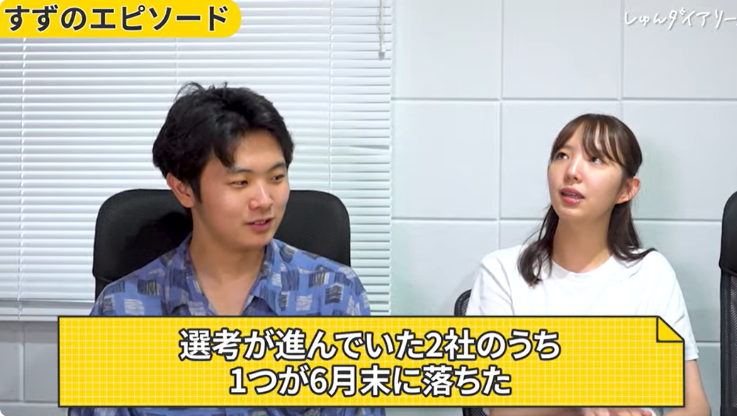 すず:私が第一志望に落ちたのは6月末でした。行きたい企業が2つあって、そのうち1つが落ちちゃったんです。