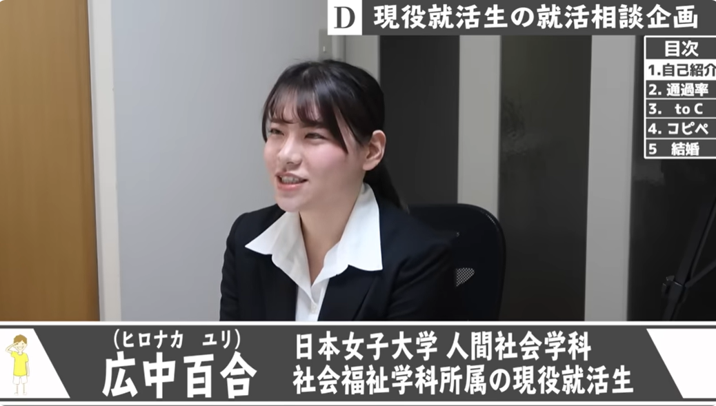 ひろなか:日本女子大学の人間社会学部で社会福祉を学んでいます。よろしくお願いします!