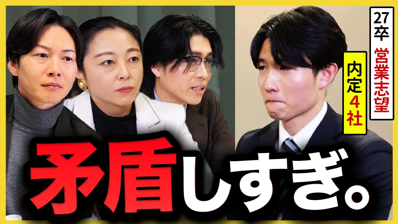 業界研究,面接対策,トイアンナ会員限定【toB営業向いてない判定】MARCH就活生が最強営業マンの面接で学んだ"落ちる自己分析"3要素複数内定を持つMARCH就活生がトイアンナさん・最強営業マンの兼頭さんに面接を受け、"toB向いてない"と判定された動画を徹底解説。落ちる自己分析の3要素(顧客思考の欠如/一貫性のなさ/PREP法できない)から、合格する自己分析への改善点を整理します。2026年4月23日いいね